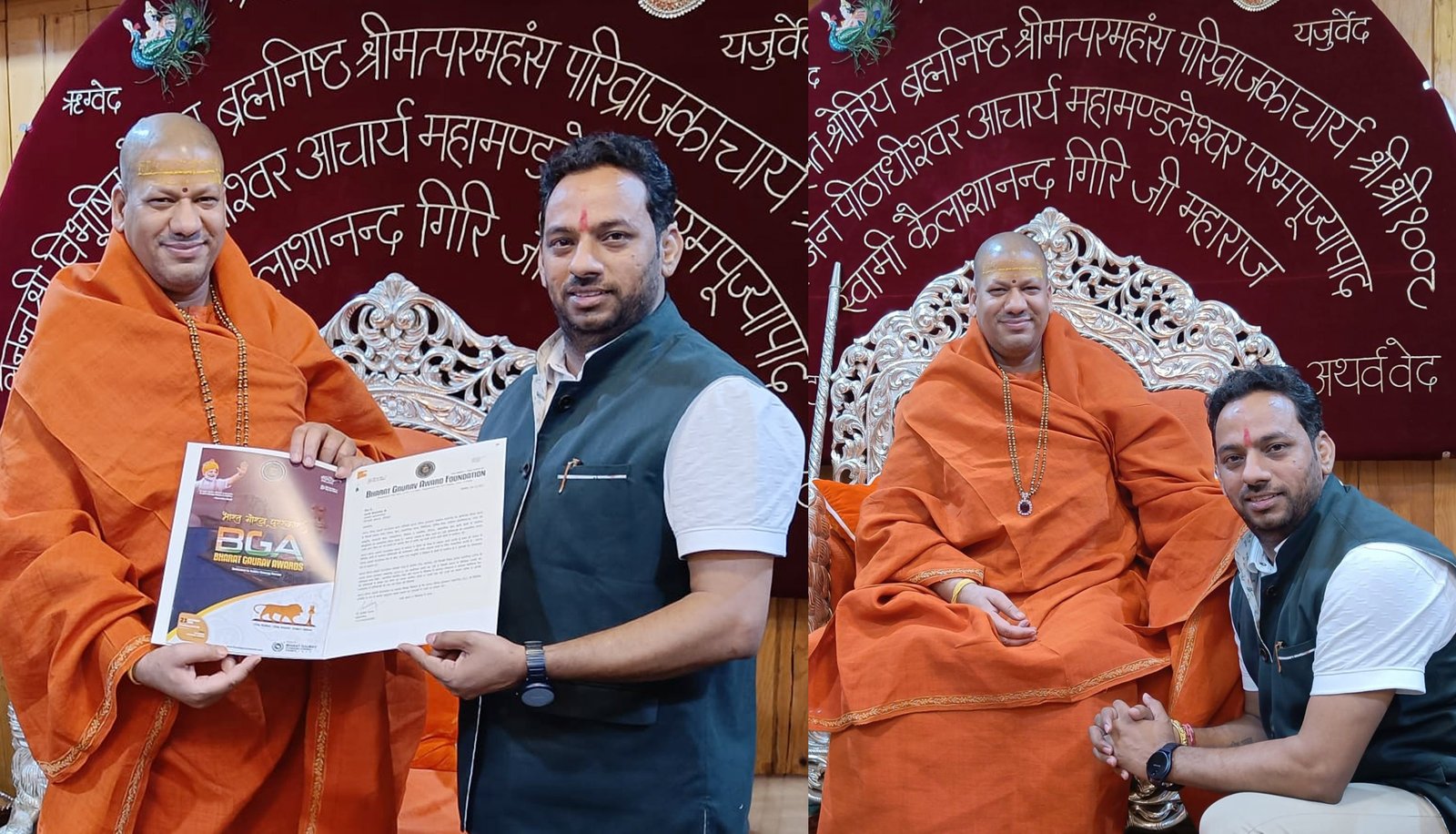 डॉ. सन्देश यादव ने देव भूमि उत्तराखंड के हरिद्वार में निरंजनी अखाड़े के महामंडलेश्वर स्वामी कैलाशानंद गिरी महाराज जी का सानिध्य व आशीर्वाद प्राप्त हुआ । भारतीय संस्कृति व सनातन धर्म के प्रचार-प्रसार करने में संतों के अतुल्य योगदान के प्रति श्रद्धा रखते हुए महासचिव ने महाराज जी का वंदन किया एवं संत परम्परा से ही भारत की पहचान की बात कही । इस अवसर पर महासचिव ने महाराज जी को भारत गौरव अवार्ड फाउंडेशन के सामाजिक कार्यों से अवगत कराया साथ ही भारत गौरव पुरस्कार समारोह में उन्हें आमंत्रित कर महाराज जी को सानिध्य प्रदान करने की बात कही । स्वामी कैलाशानंद गिरी महाराज जी ने फाउंडेशन के कार्यों की सराहना करते हुए फाउंडेशन को शुभकामनायें प्रदान की ।