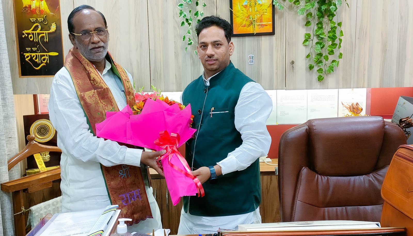 भारत गौरव अवार्ड फाउंडेशन के महासचिव डॉ. सन्देश यादव ने उत्तर प्रदेश प्रवास के दौरान लखनऊ में प्रदेश के उप मुख्यमंत्री डॉ. दिनेश शर्मा जी के साथ भारत गौरव पर चर्चा की । डॉ. सन्देश यादव ने भारत के विकास में युवाओं की भागीदारी की बात कहते हुए फाउंडेशन की गतिविधियों के साथ-साथ आगामी योजनाओं से डॉ. दिनेश शर्मा जी को अवगत कराया । महासचिव ने भारत गौरव पुरस्कार की स्थापना के पीछे छिपे उद्देश्यों से भी मंत्री महोदय का परिचय कराया । बैठक में विभिन्न विषयों पर चर्चा करते हुए मंत्री महोदय ने युवाओं को अपने विचारों को अपनी नीतियों का साझा करने की बात कही व फाउंडेशन द्वारा किये जा कार्यों की सराहना की ।