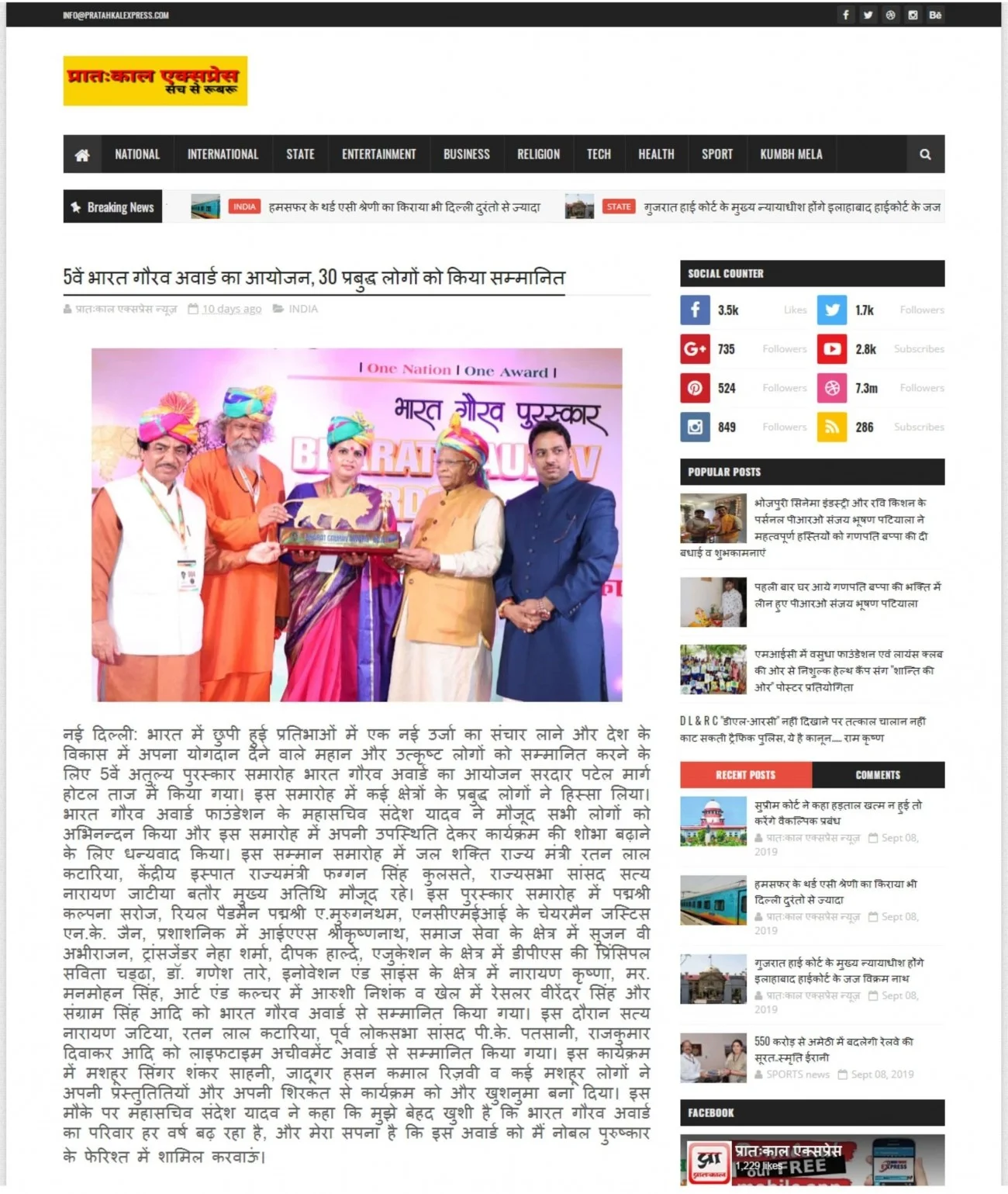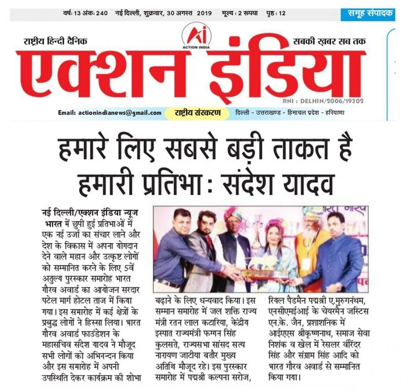 BHARAT GAURAV AWARD